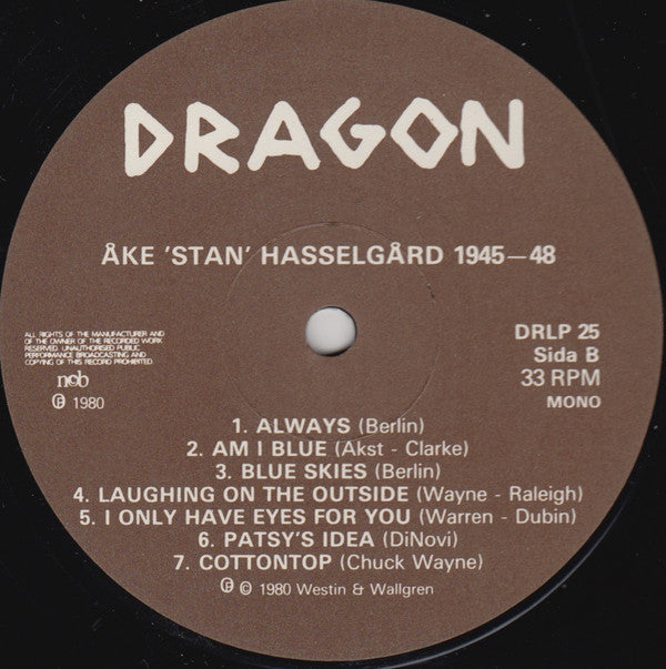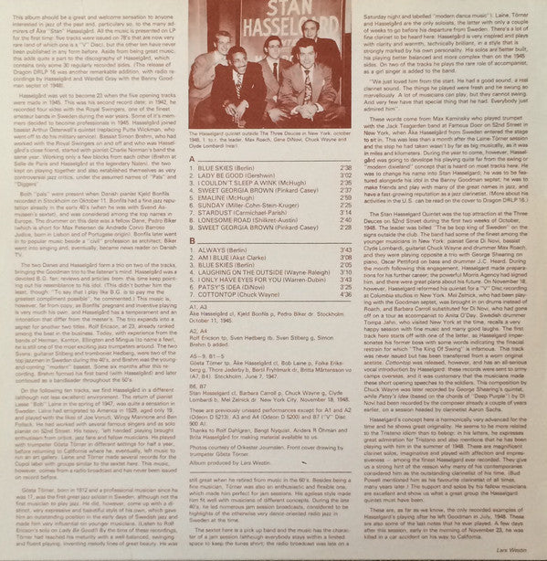 A1 to A4: Recorded in Stockholm, October 11, 1945. A5 to B5: Recorded in Stockholm, June 7, 1947. B6, B7: Recorded in New York City, November 18, 1948. ℗© 1980 Westin & Wallgren