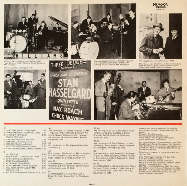 Comes with an inlay card with information in Swedish about the artist and the recordings. Recording dates: A1: Godtemplargården, Bollnäs, December 1940. A3: Bollnäs, summer 1941. A4 to A8: Stockholm, July 25, 1942. B1: Stockholm, 1943. B2, B3: Stockholm, March 14, 1944. B4, B5: Stockholm, November 20, 1945. B6: Stockholm, autumn 1946. B7, B8: New York City, November 18, 1948. The cover is printed by Miletryck. The inlay card is printed by Blomberg & Janson Offsettryckeri AB. ℗© 1988 Dragon Records