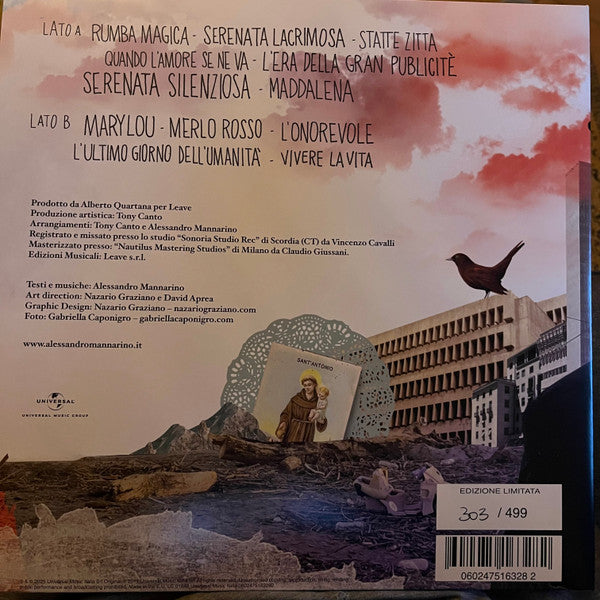 Limited Edition of 500 copies. Numbered from 000 to 499 copies. Comes in a gatefold sleeve with flyer and an insert with lyrics. The inner sleeve is generic white. Discoteca Laziale exclusive, part of the “DL Version” series, a selection of albums reimagined, numbered and repressed in an exclusive color by and for Discoteca Laziale, in agreement with the music labels.