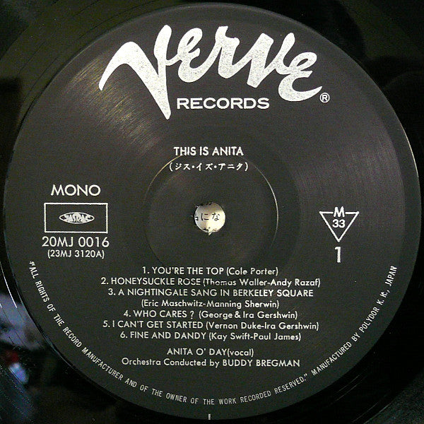 Made in Japan Comes with double sided insert. Front is tracklisting and bio / tracks in Japanese and reverse is lyrics in English. Comes with pink OBI with Verve Best 50 logo at the top, Vinyl comes in shaped poly sleeve. Price (¥2,000) at top of OBI next to catalogue number. There are multiple catalogue numbers on the runouts, some matching the catalogue / label numbers, some not. No track timings given anywhere. Original recording made in 1956
