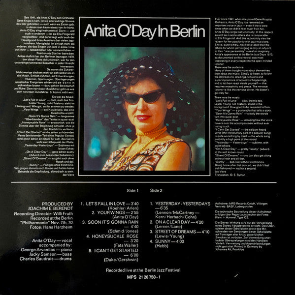 Recorded live at the Berlin Jazz Festival, Berlin "Philharmonie" Nov. 7th, 1970. Originally released on late 60's style pink MPS, then on red label BASF in CRM 7XX series, thus making this version the 3rd pressing in about one year!