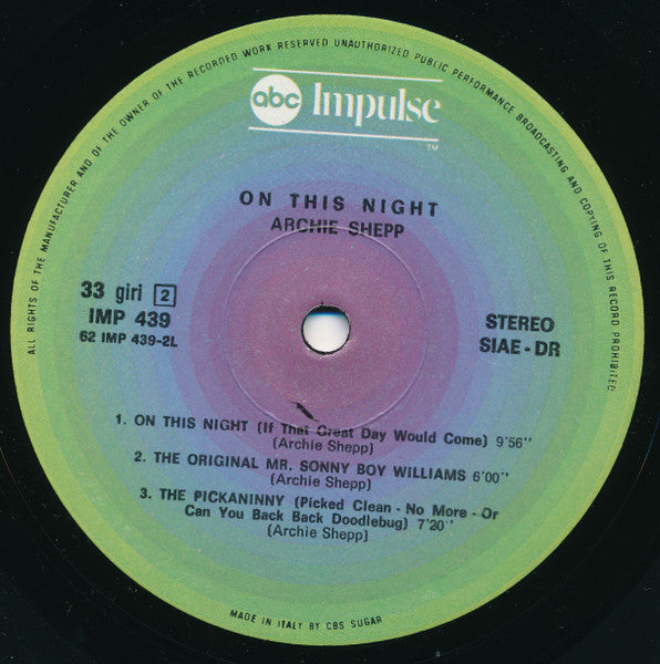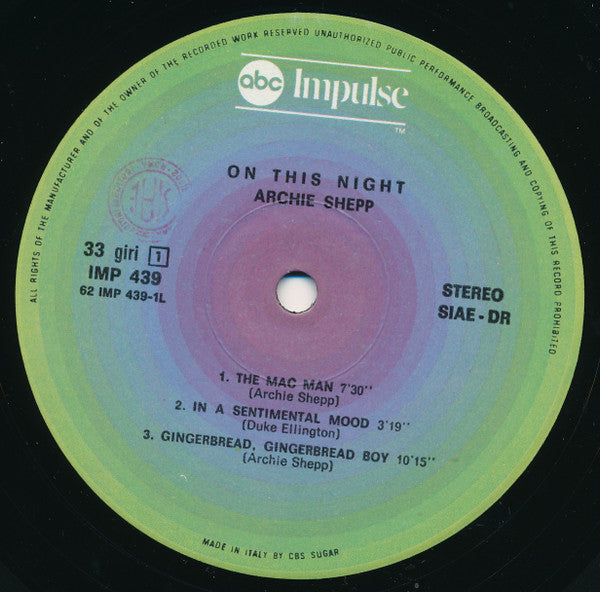 - Includes printed 12" insert with tracklist, credits, liner notes and photos - Runouts are stamped, '∆∆∆∗∗∗I⃫I⃫' is etched On labels: SIAE • DR [Diritti Riservati - Rights Reserved Made in Italy On insert: Distribuzione Messagerie Musicali, Milano.