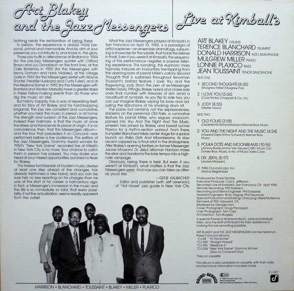 Recorded live at Kimball's, San Francisco, CA April 1985