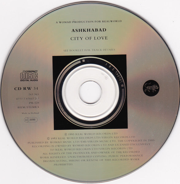 Recorded at Real World Studios, Wiltshire, UK, August 1992 ℗ 1993 Real World Records Ltd © 1993 Real World Records Ltd/Virgin Records Ltd Printed in Holland Made in Holland Cat.no. on disc is written CD RW 34.