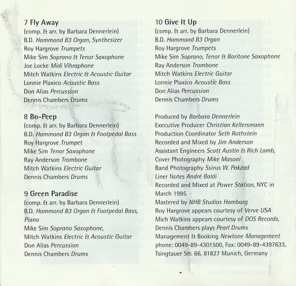 Jewel case 12-page booklet Recorded and mixed in March 1995.