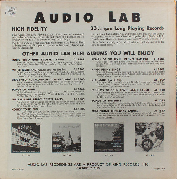 Catalog # AL-1505 on labels. Catalog # AL 1505 on cover