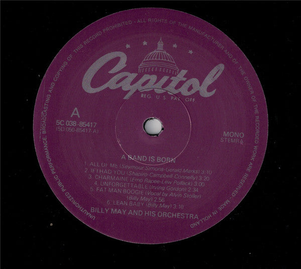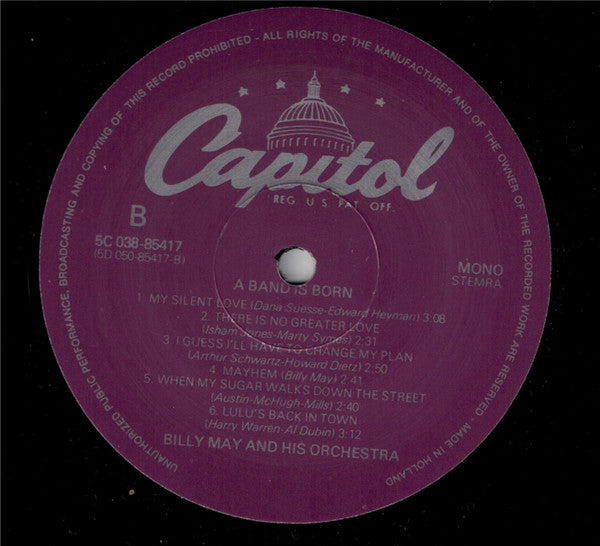 Made in Holland Variations on release: - Frontcover & Rear Cover: Billy May - Center Labels: Billy May And His Orchestra - Cat# spine & center labels: 5C 38-85417 - Cat# rear cover: T 349 and 5C 038-85417 purple colored label