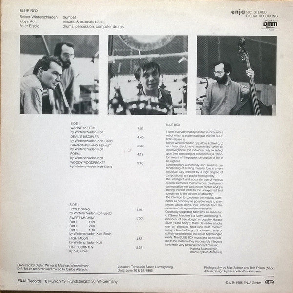 Digitally recorded and mixed June 20 & 21, 1985 at Tonstudio Bauer, Ludwigsburg Ⓒ & Ⓟ 1985 Enja GmbH Made in W. Germany