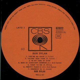 Italian second pressing, orange CBS label. Probably a late 60's pressing. The sleeve is laminated on the front, it have two folded-over flaps on the back. Text at the bottom of the back sleeve. "Recorded in U.S.A by CBS a Division of the Columbia Broadcasting System. Inc. CBS is a Trademark of the Columbia Broadcasting System. Inc. U.S.A
