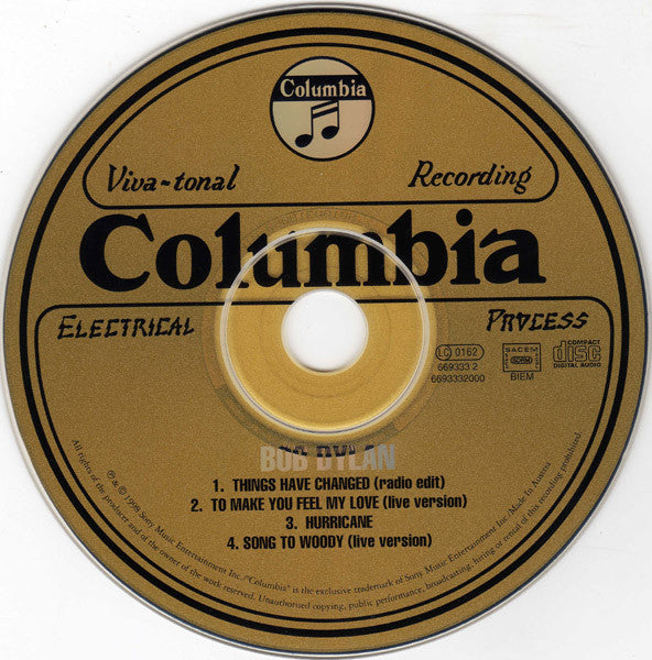 "Things Have Changed" is a song from the film Wonder Boys. "To Make You Feel My Love" recorded live at Pauley Pavilion, UCLA, Los Angeles, California, 21 May 1998. "Song to Woody" recorded live at Santa Cruz Civic Auditorium, Santa Cruz, California, 16 Mar 2000. On disc: "Made In Austria".