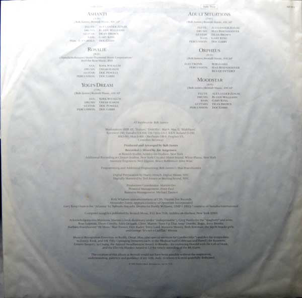 Recorded and mixed at Remidi Studio, Ardsley-On-Hudson, New York. Additional recording at Clinton Studios, New York City and Minot Sound, White Plains, New York. Digital preparation at Digital House, NYC. Digitally mastered at Sterling Sound, NYC. Printed inner sleeve.