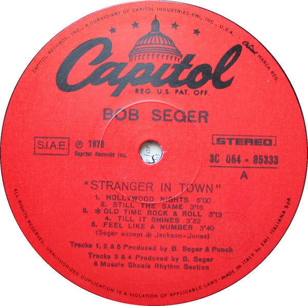 First Italian release, red Capitol labels, printed inner sleeve with lyrics and credits. Labels credit only Bob Seger. ℗ 1978 Capitol Records, Inc. © 1978 Capitol Records, Inc. Made in Italy by EMI Italiana S.p.A. A1, A2, A4, A5, B2 to B4 : © Gear Publishing Co./ASCAP A3 : © Muscle Shoals Sound Publishing Co., Inc./BMI B1 : © Chrysalis Music Corp./ASCAP
