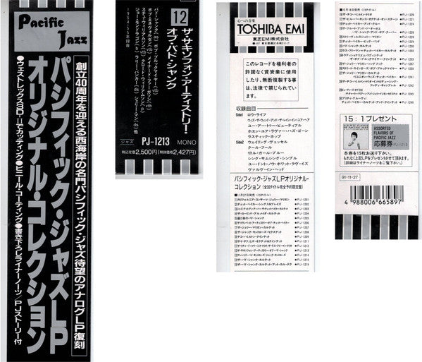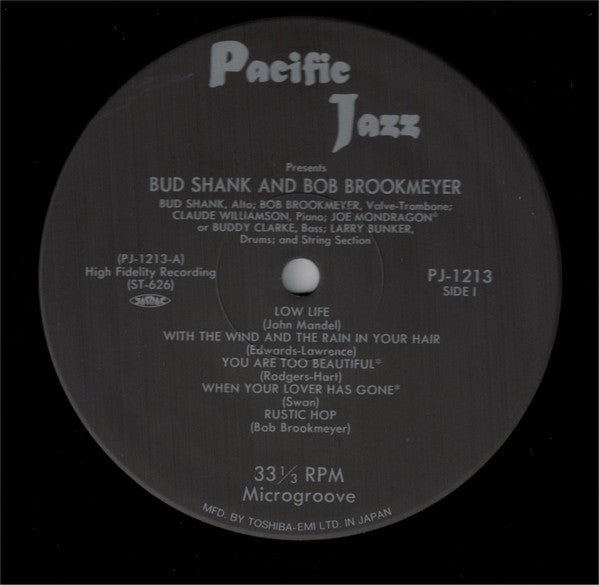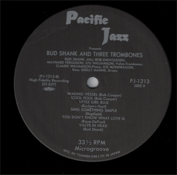 Copyright 1956 by Pacific Jazz Records Title on rear cover & spine: " The Saxophone Artistry Of Bud Shank" Titles on Center Label as shown in headers Original Release: Pacific Jazz PJ-1213 no new cat# for the jap. reissue on release Side A recorded January 7, 1955 at Radio Recorders - Hollywood, California Side B recorded June 22, 1954 at Capitol Recording Studios - Hollywood, California