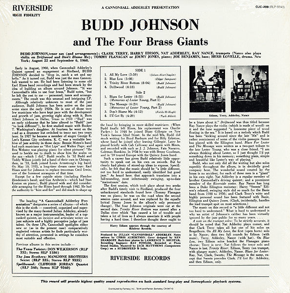 Recorded in New York; August 22 and September 6, 1960. The list of musicians on top of the back cover credits Nat Adderley and Clark Terry on trumpet, but this is corrected in the liner notes below that Adderley plays cornet on all tracks and Terry playes the flugelhorn on all tracks but one. Tommy Flanagan played on the first session date, and Jimmy Jones on the later session. The liner notes don't specify in which tracks the two pianists play, the info here has been collected from internet source: jazzdisco.org
