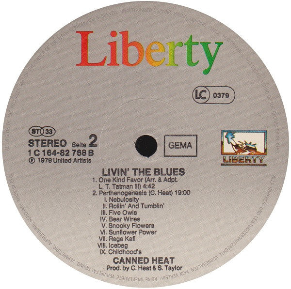 Issued in a gatefold sleeve. Sides one and two recorded at I. D. Sound Recorders, Hollywood, California. Sides three and four recorded 100% live at the Kaleidoscope, Hollywood, Calif. Masters cut at Artisan Sound Recorders, Pasadena, Calif. ℗ 1979 United Artists Made in EEC Track A4 "Going Up The Country" listed on center label as "Walking By Myself" Similar releases: German release with United Artists Records labels German release with different center labels (outer rim text in German only)