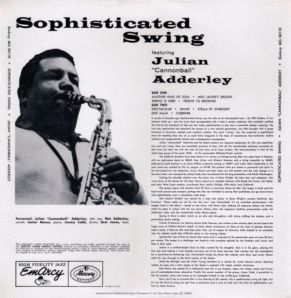 Recorded on February 7, 8 1957. “SHINSEIDO JAZZ COLLECTOR'S SPECIAL” Manufactured by NIPPON PHONOGRAM Japan. with OBI and insert. Writing credits: as printed on disc labels and from the liner notes Publisher as printed on the disc labels