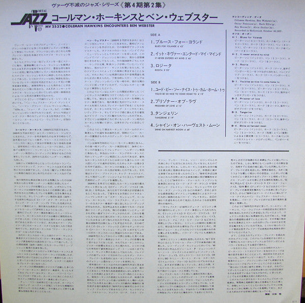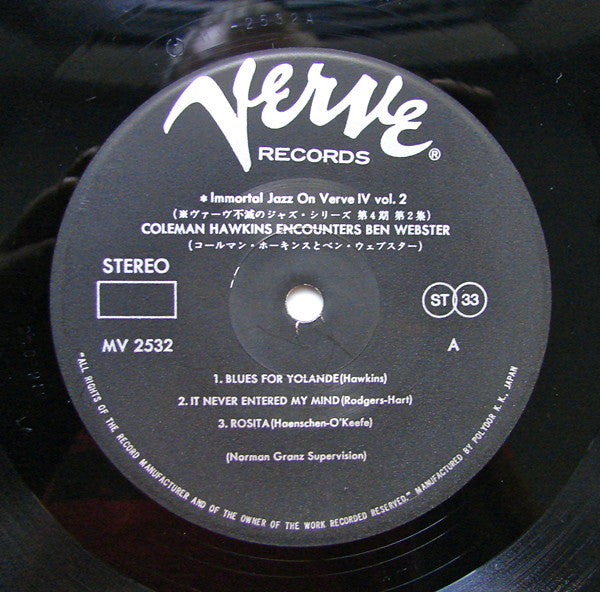 This Session was recorded in Hollywood, October 16, 1957. Contains inlay sheet with Japanese commentary. Manufactured by Polydor K.K., Japan KI 7501