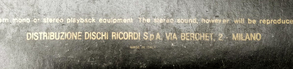 Made in Italy ℗ 1971 Gold imprinted on a black gatefold cover. "Old Time" looking photograph of the band on front cover. Jerry Garcia & John Sebastian: Courtesy of Warner Brothers. Recorded at: Wally Heiders Studio III, L.A. Publishing: Gold Hill Music - Tracks A1, B3, B5 Giving Room Music - Tracks A2, B2 Guerilla Music - Tracks A3, B1 Siquomb Music - Track A5 Ten-East - Tracks B4a, B4b Broken Arrow-Cotillion - Tracks A4, B4a, B4b, B4c, B5 All Selections BMI 1st catalog number as printed on cover. 2nd catalog number as printed on center labels.