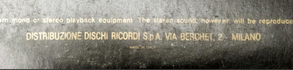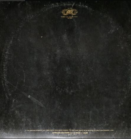 Made in Italy ℗ 1971 Gold imprinted on a black gatefold cover. "Old Time" looking photograph of the band on front cover. Jerry Garcia & John Sebastian: Courtesy of Warner Brothers. Recorded at: Wally Heiders Studio III, L.A. Publishing: Gold Hill Music - Tracks A1, B3, B5 Giving Room Music - Tracks A2, B2 Guerilla Music - Tracks A3, B1 Siquomb Music - Track A5 Ten-East - Tracks B4a, B4b Broken Arrow-Cotillion - Tracks A4, B4a, B4b, B4c, B5 All Selections BMI 1st catalog number as printed on cover. 2nd catalog number as printed on center labels.