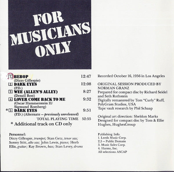 Recorded October 16, 1956 in Los Angeles Track 5: Additional track on CD only