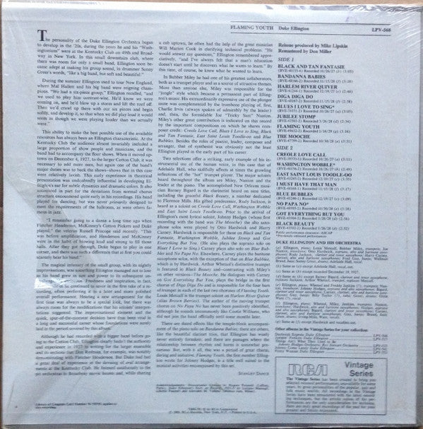 'The historic sound of the early and vital Harlem band in 16 exciting 1927-1929 recordings' Duke Ellington credited on sleeve; Duke Ellington and his Orchestra credited on center labels. Tracks A5, B2, and B6 are previously unissued performances.