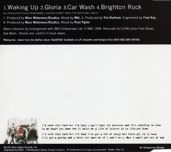 Track 2: released by arrangement with BBC Enterprises Ltd. ℗ BBC 1994. Recorded 6/12/94 (John Peel Show). Track 3: Donna and Justin's 4 track demo. ℗ & © 1995 Geffen Records, Inc. BMI / EMI Music Publishing Made in the EC Packaging: J-card case.