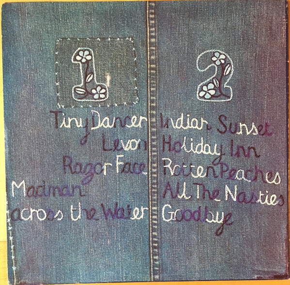 This version has black labels, silver text in body of label, yellow DJM logo and perimeter text. This differs from [r811783 which has silver perimeter text. SIDE 1 and SIDE 2 on labels (not side one etc). DJLPH.420 on labels, DJLPH 420 on booklet and spine. Pressed on translucent red vinyl when held to the light.. Mock denim textured gatefold sleeve with stapled booklet glued to right hand inner panel of gatefold sleeve. Dick James Music Limited. Made in England.