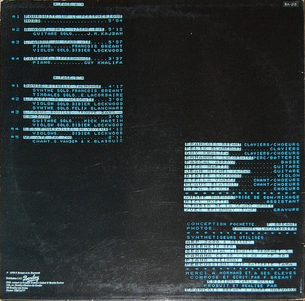 Recorded at Studio de la Grande Armée. ℗ 1979 F. Bréant & A. Harwood Made in France