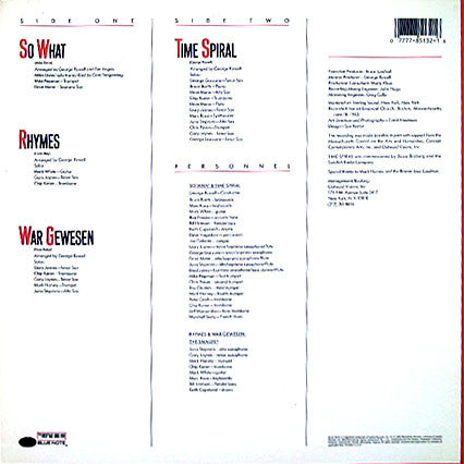 Mastered at: Sterling Sound, New York, New York Recorded live at Emanuel Church, Boston, Massachusetts, June 18, 1983. © ℗ 1986 Manhattan Records, a division of Capitol Records, Inc. [… Printed in U.S.A. ——— Printed “Blue Notes, vol: 1UU6” inner sleeve.