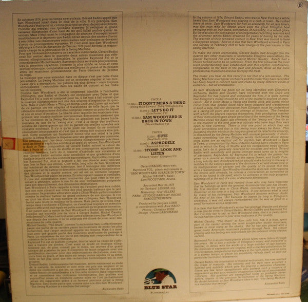 Recorded May 30, 1975 Spine reads: House of Jazz Vol. 1/The Swing Machine/Blue Star 80.701 Label reads: House of jazz Vol. 1 The Swing Machine Front reads: House of Jazz Vol. 1 "The Swing Machine" Gerard Badini / Sam Woodyard / Raymond Fol / Michel Gaudry