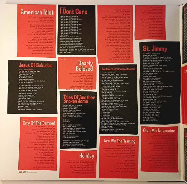 Double gatefold sleeve. Tracks listed sequentially. Features lyrics in the inner artwork. First catalog number from packaging, second one from labels. No full credits present. Mastering and pressing credits adapted from runouts. Back: Reprise Records, A Warner Music Group Company. © ℗ 2004 Reprise Records for the U.S. and WEA International Inc. for the world outside the U.S. Manufactured in the E.U. Similar to the US release [r9452213, but has a Label Code (LC 00322) on the back cover. Labels: © ℗ 2004 Reprise Records. Abbreviated catalog number "48777-1" appears on center labels. "Parental advisory explicit content" printed on back sleeve. Repressed over the years with the same graphic layouts. Runouts are etched, except "STERLING" which is stamped.