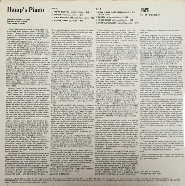 Recorded at Hans Georg Brunner-Schwer Studio, Villingen, West Germany, November 8, 1967 Reissue from 1971 in the CRM series, released in the predecessor MPS cover with the predecessor cat# and an additionsl BASF sticker on the front cover.