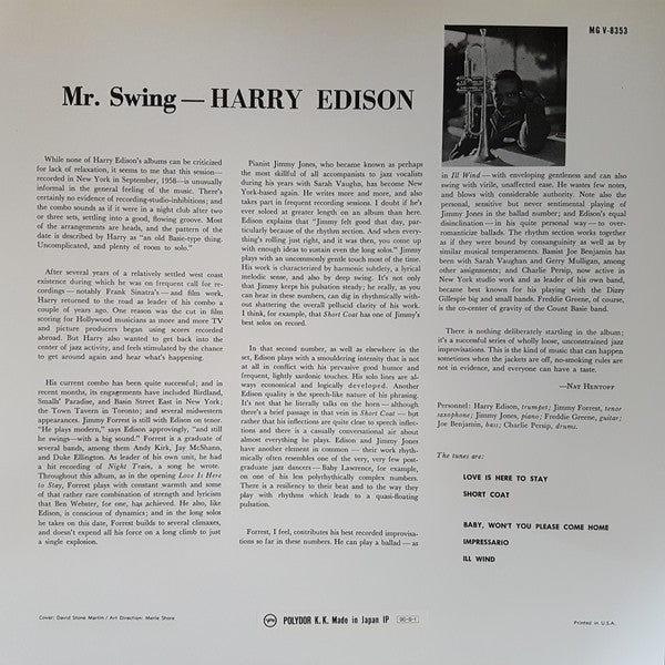 On label: Under The Personal Supervision Of Norman Granz Recorded 1958/09/18 Cat# variations on release: - Spine: MGV6-8353 - Front cover: MGV6 8353 - Rear cover: MG V-8353 - Disc labels: (MGV6 8353 & POJJ 1502-A/B - Jap. Inlay sheet: POJJ-1502 / (MGV6-8353)
