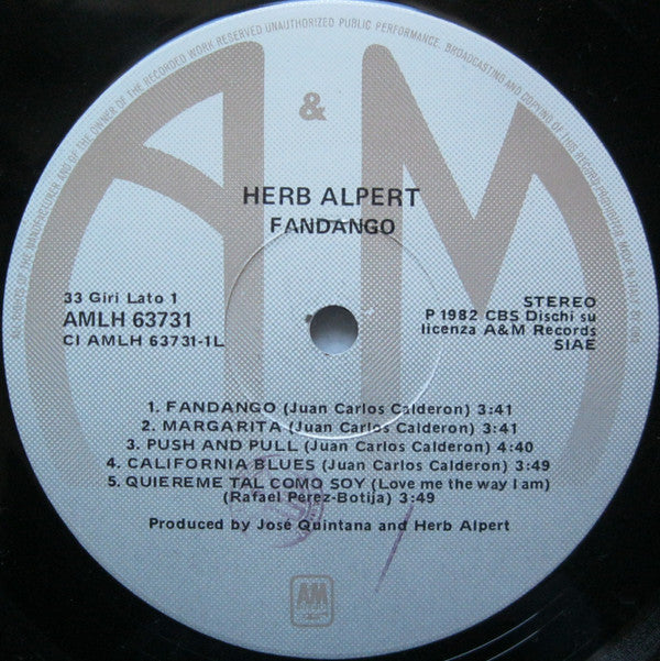 Recorded at CBS Studios, Mexico City, A&M Recording Studios, Hollywood, CA.