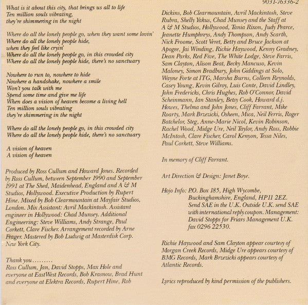 ℗1992 Warner Music U.K. ltd. ©1992 Warner Music U.K. ltd. In Memory of Cliff Farrant. Made in Germany by Warner Music Manufacturing Europe.