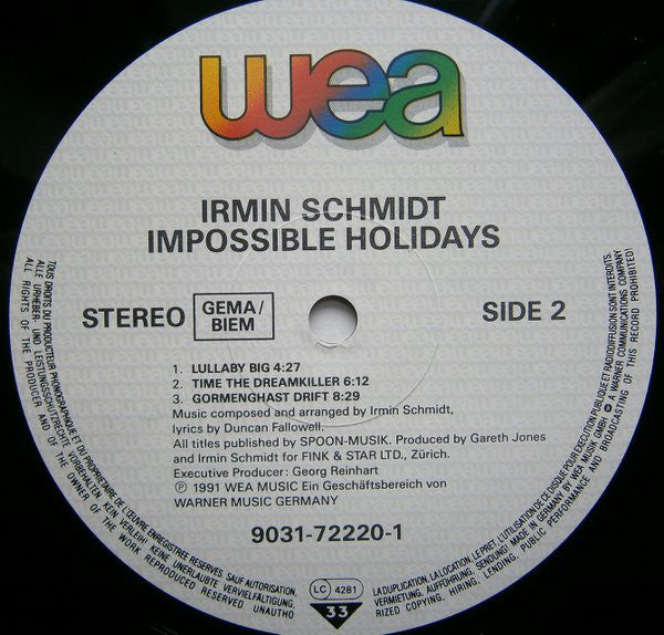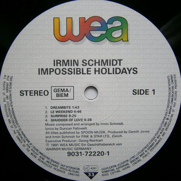 "Impossible Holidays" recorded at Tritonus Studio, Hansa Studio & Audio Studio, Berlin; Taktic Studio, Paris; Outer Space Studio, Nice; Can Studio, Weilerswist; Studio Les Rossignols, Rousillon/Gordes. Mixed at Tritonus Studio Berlin.