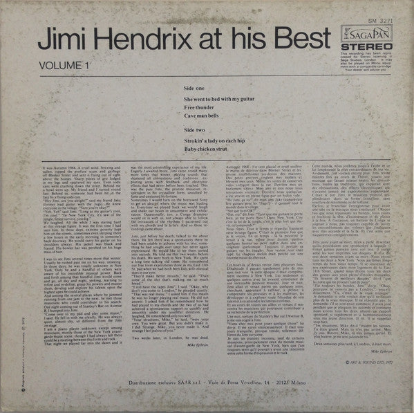 © Art & Sound Ltd. 1972 ℗ 1972 Made in Italy Distribuzione esclusiva SAAR s.r.l. - Milano This version without box around SIAE. Tracklist-Design is centered. This recording has been reprocessed for Stereo listening at Saga Studios, London Glossy single jacket. Part of a jam-session known as the "Mike Ephron Sessions", recorded on September 1969 (13th or 19th) at Shokan House, Boiceville, NY, with Mike Ephron, Juma Sultan and Jerry Velez.