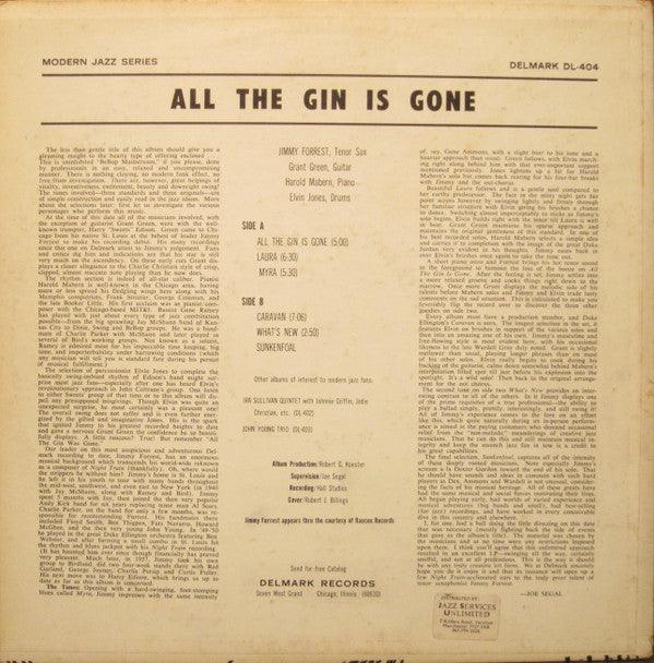 blue Delmark labels Made in England sticker on back cover: Distributed by: Jazz Services Unlimited 7 Kildare Road, Swinton Manchester M27 3AB 061-794 3525 credit for Gene Ramey on back cover is missing, as well as track duration for B3 Sunkenfoal. Recording Date: December 10, 1959 - December 12, 1959 according to Allmusic. Recording Location: Hall Studios, Chicago