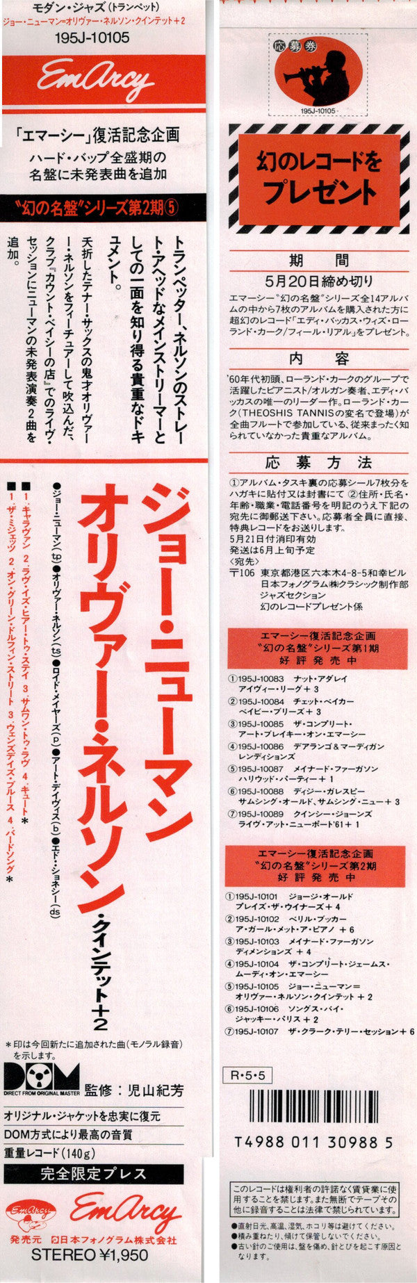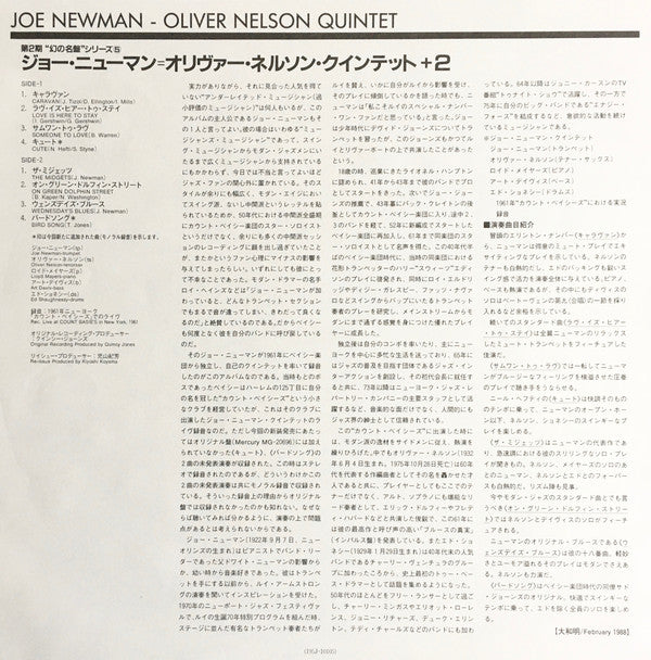 Recorded "live" at Count Basie's, New York City, 1961 On LP Label (A / B) the group is named as " Joe Newman - Oliver Nelson Quintet" Track B5 = Additional track (Mono), previously not included in original album