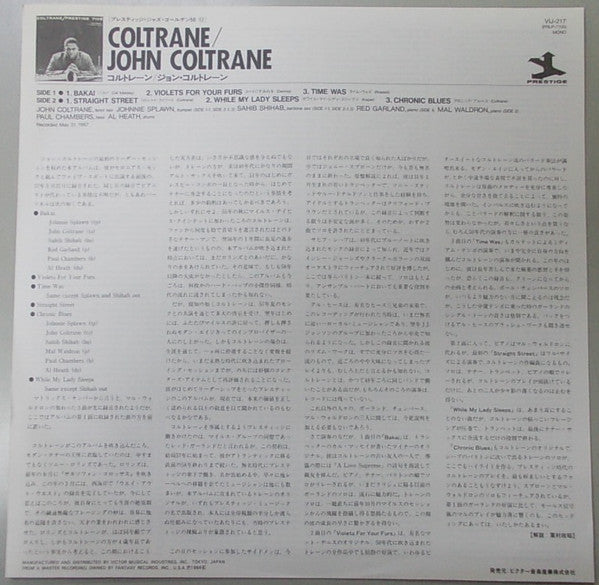 Recorded in New York City, May 31, 1957. VIJ-217/ ¥2,300 Made in Japan/Manufactured and Distributed by Victor Musical Industries, Inc. Japan. 1984