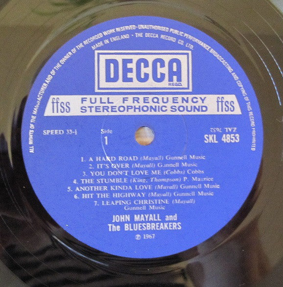 Early UK repress Released with blue/silver “boxed” Decca labels Track B4 written as “The Super-Natural” on label. Cover with Mono/Stereo indicator hole on the back top right of the jacket Laminated with ‘Clarifoil’ made by British Celanese Limited Sleeve printed by Robert Stace Recorded at West Hampstead Studios, London on October 11, 12, 19, 24 and November 11, 1966. About the matrix stamped on runout vinyl: the characters ‘G’, ‘1’ etc, after the matrix numbers, are hardly visible, stamped far and horizontally, looking at the label frontally.