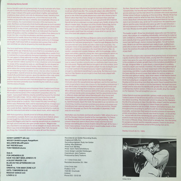 (P)&(C) 1985 Criss Cross Jazz Recorded December 28, 1984 at Van Gelder Recording Studio, Englewood Cliffs, N.J.