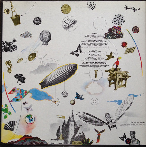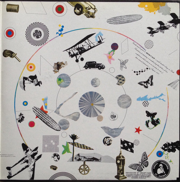 Reissue with "Charter Line" yellow sticker on front for some copies, different matrix in the run-out groove and different labels with release and rights details all in italian language along the perimeter. See attached images. "All selections are published by Superhype Msc. Inc. ASCAP" "Credit must be given to BRON-Y-AUR a small derelict cottage in South Snowdonia for painting a somewhat forgotten picture of true completeness which acted as an incentive to some of these musical statements - August 1970." Made in Italy by WEA Italiana.