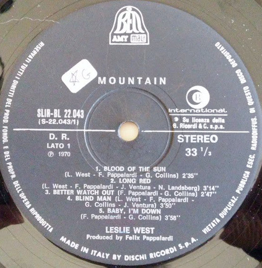 The sleeve is laminated. On labels: Made in Italy ℗ 1970