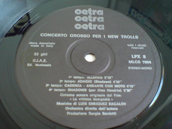 This is a 1974 reissue on black/silver label type variation "CETRA CETRA CETRA" with unboxed S.I.A.E. logo on the label to the left. Original soundtrack to the film "La Vittima Designata". Subsequent reissues were on Fonit orange label. Ed. Nazionale on label side A. Ed. Usignolo on label side B. Recorded at Ortophonic Studio, Rome and Studio Fonit-Cetra, Milan, Italy, 23,25,26,27 - March 1971. Ortophonic Studio is now known as Forum Music Village which is in Discogs whereas Ortophonic Studio isn't.
