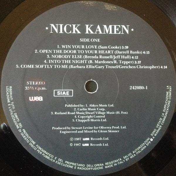 Limited edition with folded poster. Printed inner sleeve. Produced for Oliverea Prod. Ltd. Recorded at Rak Studios, London, England; Ocean Way Recording, Hollywood, California; The Castle Recording Studio, Franklin, Tennessee and Larrabee Sound, Los Angeles, California. Mastered at Master Room, London. Made and disyributed in Italy by WEA Italiana Spa. Published by: A1 - Abkco Music Ltd. A2 & B4 - Carlin Music Corp. A3 - Rutland Road Music/Dwarf Village Music/H. Fox A4 - Copyright Control A5 - Chappell-Morris Ltd. B1 - Jobete Music (UK) Ltd./Black Bull Music B2 - Warner Bros. Music Ltd./Island Music Ltd. B3 - Warner Bros. Music Ltd. B5 - Chappell Music Ltd. ℗ © 1987 WEA Records Ltd. except B2: ℗ 1986 WEA Records Ltd.