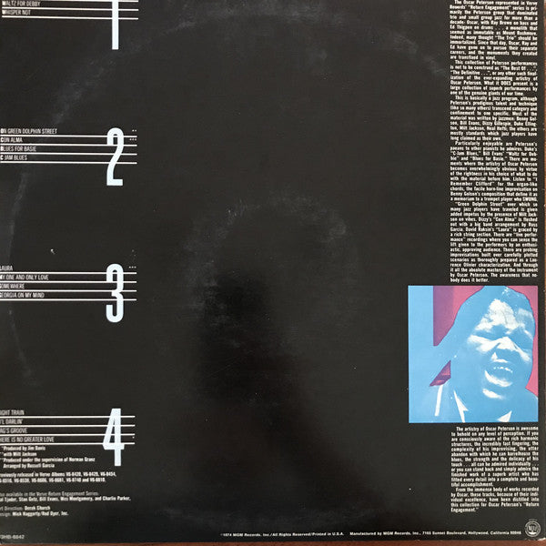 "©1974 MGM Records, Inc./Printed in U.S.A. Manufactured by MGM Records, Inc." is printed on the back of the cover, while "Manufactured and marketed by Polygram Classics, Inc." is printed on each label. There is no mention of MGM on the labels. Previously released in Verve Albums V6-8420, V6-8429, V6-8454, V6-8516, V6-8538, V6-8606, V6-8681, V6-8740 and V6-8810.