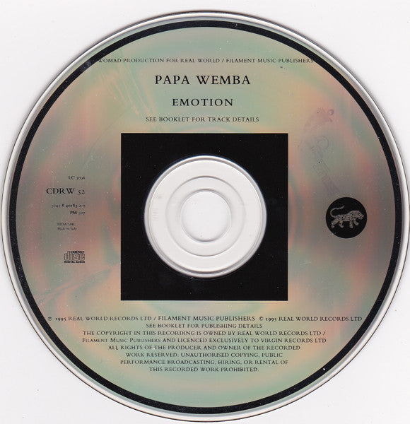 Recorded at Real World Studios, Box, England and Guillaume Tell Studios, Paris. Mixed at Rak Studios, London. ℗ 1995 Real World Records Ltd. / Filament Music Publishers © 1995 Real World Records Ltd. Made in Italy Printed in Italy