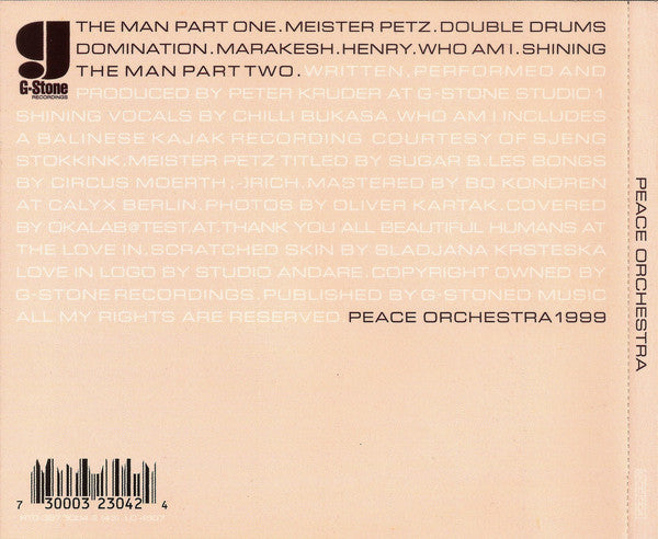 "Who Am I" includes a Balinese Kajak Recording courtesy of Sjeng Stokkink. On the outside of every case is a real "band-aid" on the cover with the inscription "Peace Orchestra". Produced at G-Stone Studio 1 Copyright owned by G-Stone Recordings.