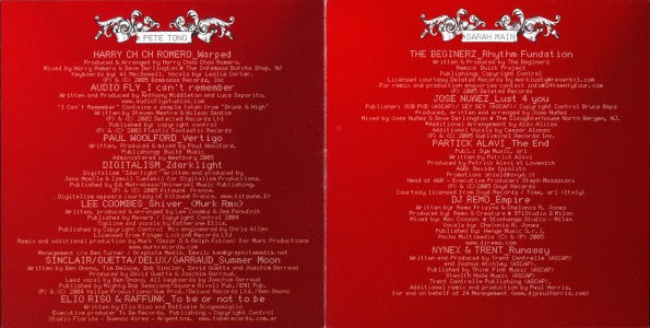 Track 1-10 misspelled as "Zdarklight" Track 2-08 misspelled as "Rhythm Fundation"